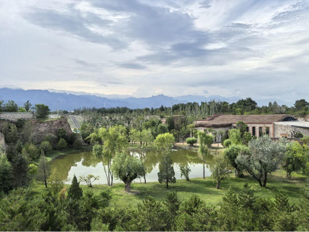 寧夏銀川市西夏區(qū)鎮(zhèn)北堡鎮(zhèn)源石酒莊經(jīng)過修復的廢棄礦坑,如今滿目新綠(2025年7月8日攝)。新華社記者 馬麗娟 攝