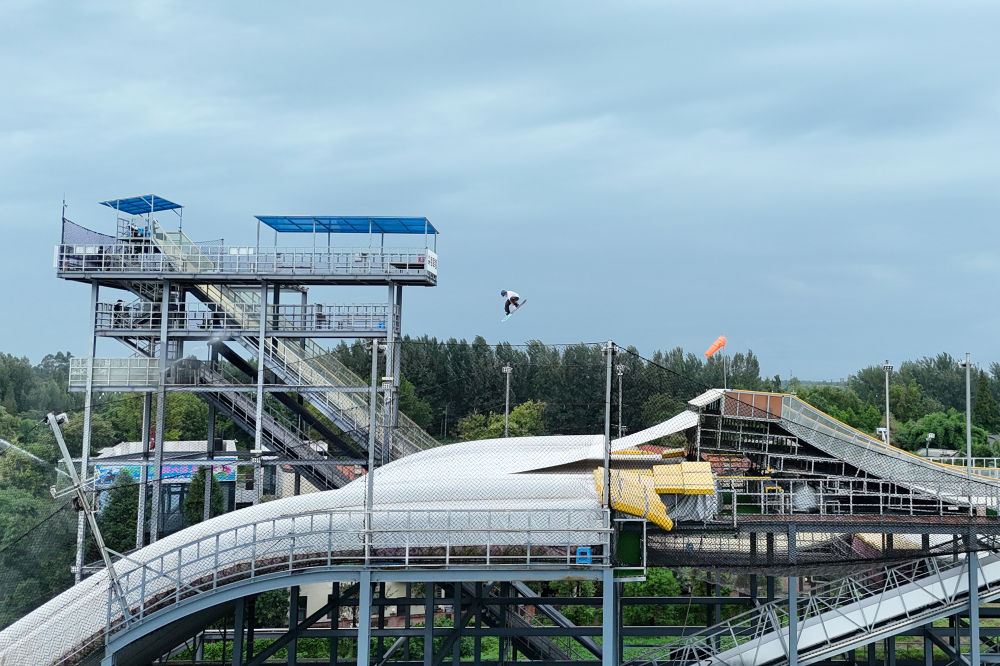 2024年8月9日,一名運(yùn)動(dòng)員在四川成都尖鋒旱雪四季滑雪場(chǎng)訓(xùn)練。