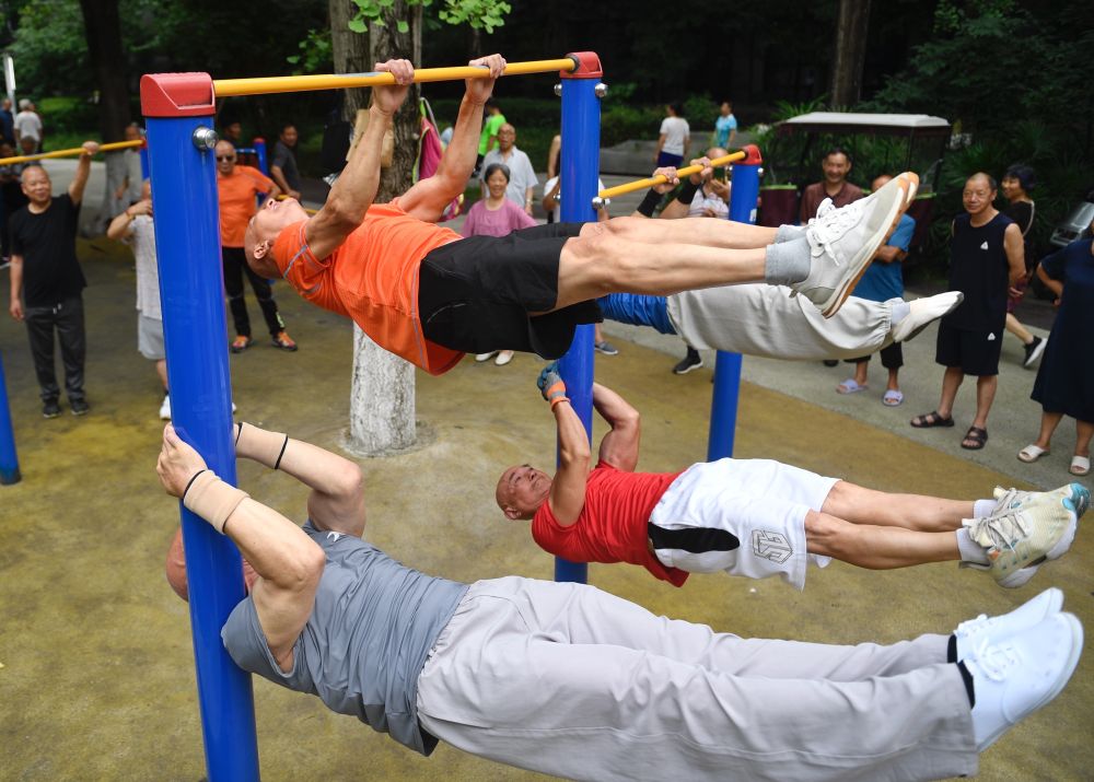 2024年6月18日,健身愛(ài)好者在四川成都新華公園內(nèi)鍛煉。
