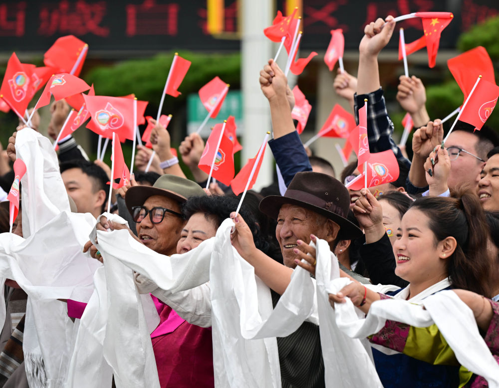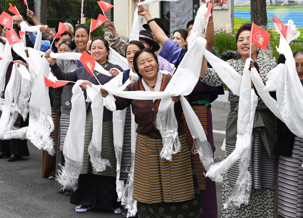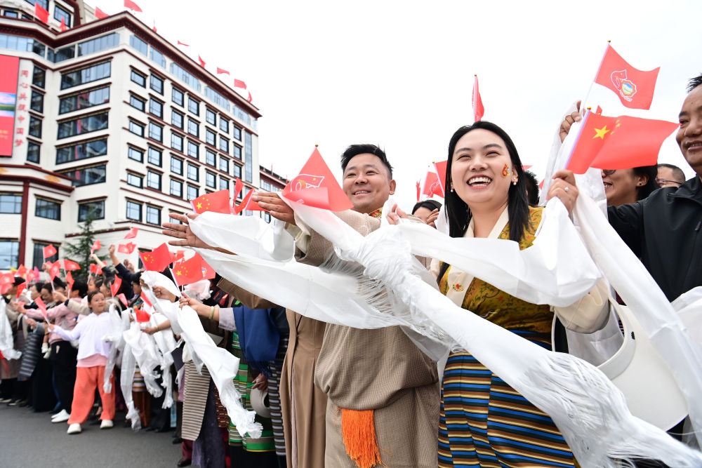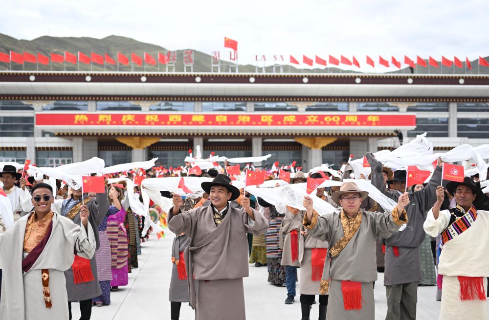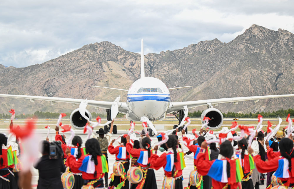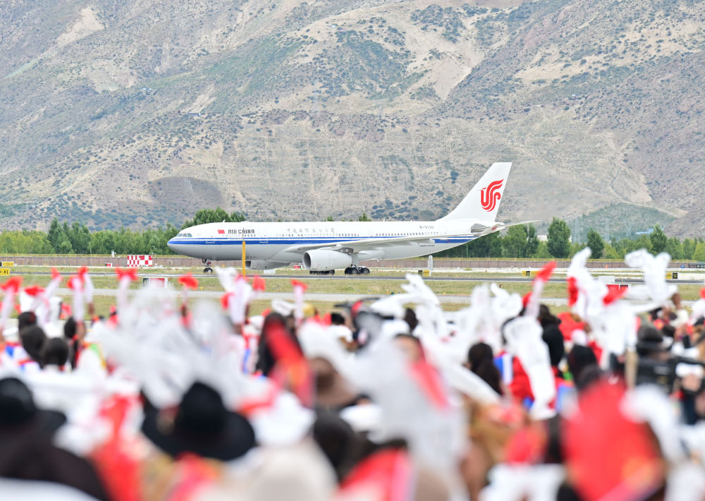 中共中央總書記、國家主席、中央軍委主席習近平率中央代表團20日中午乘專機抵達拉薩,出席西藏自治區(qū)成立60周年慶祝活動。習近平等在機場和拉薩市區(qū)受到西藏各族群眾的熱烈歡迎。