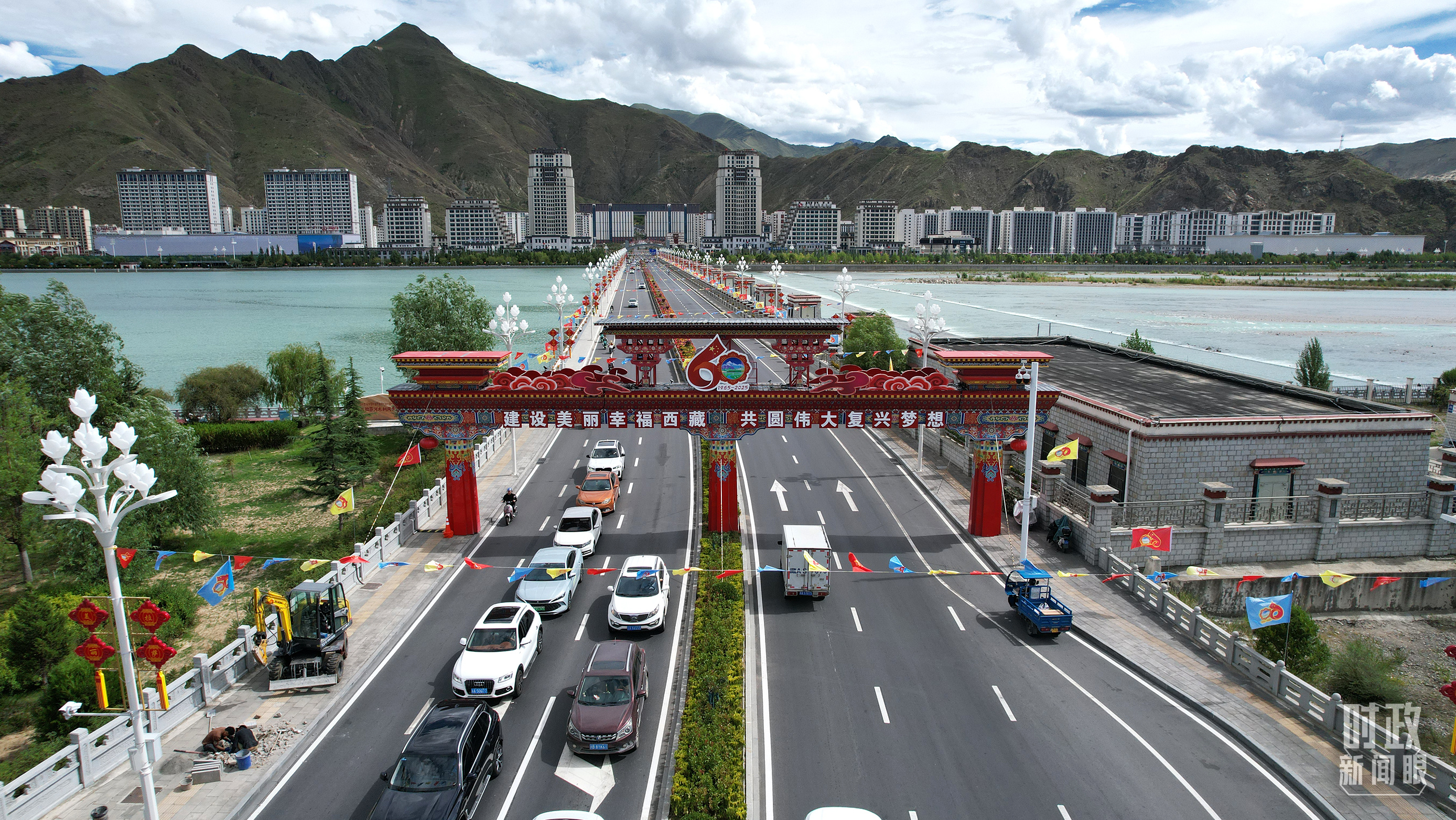 充滿節(jié)日氛圍的古城拉薩,從機(jī)場(chǎng)到住地主要街道兩旁彩旗舞動(dòng),各族群眾手持紅旗、捧著哈達(dá),齊聲歡呼。