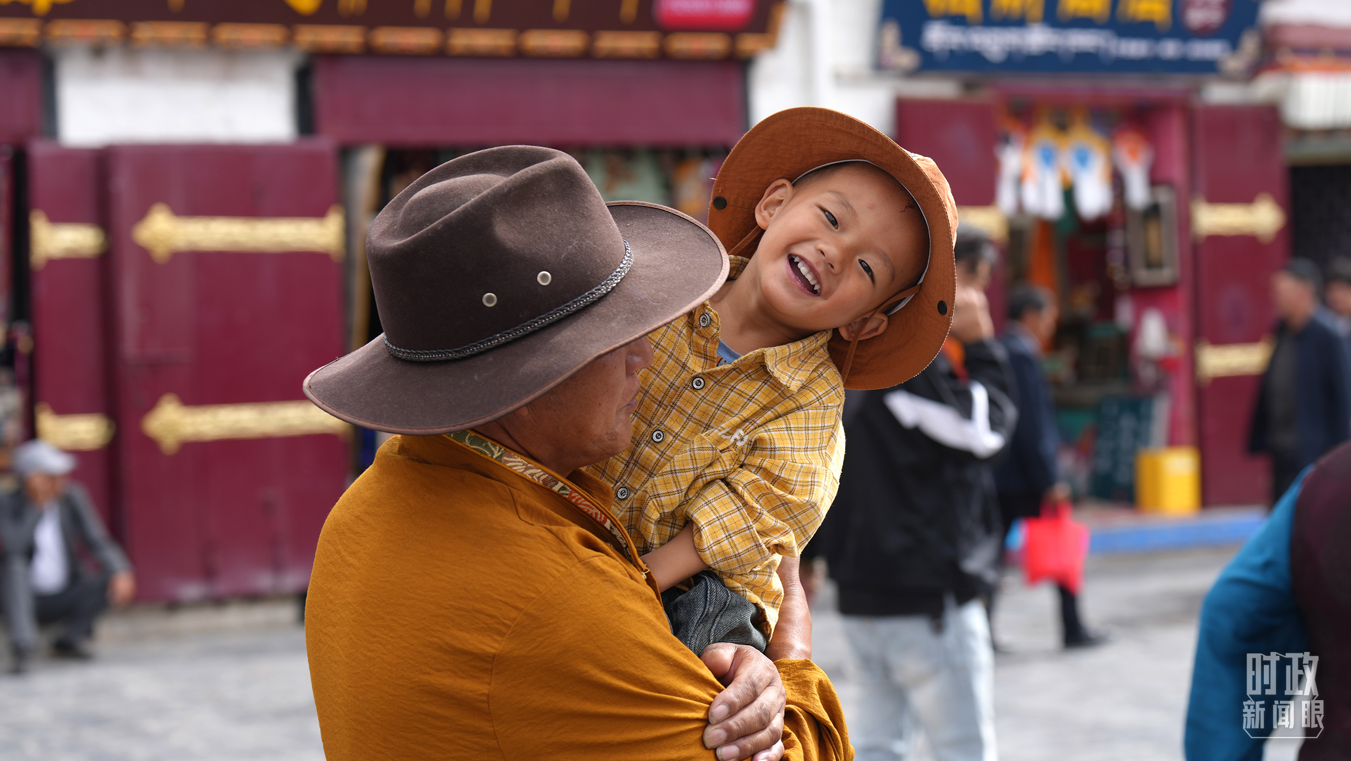 拉薩八廓街上的溫馨一幕。(總臺(tái)記者李晉拍攝)
