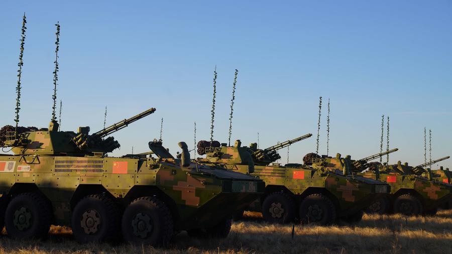 2021年9月20日,在俄羅斯奧倫堡州東古茲靶場舉行的“和平使命-2021”上海合作組織聯(lián)合反恐軍事演習(xí)開幕式上,中方參演部隊(duì)接受檢閱。新華社記者梅世雄攝