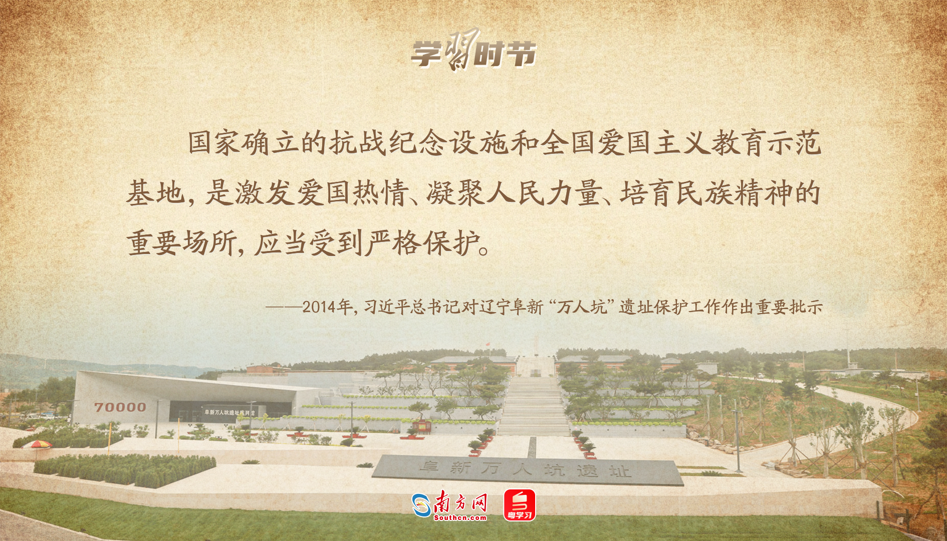“國家確立的抗戰(zhàn)紀念設(shè)施和全國愛國主義教育示范基地,是激發(fā)愛國熱情、凝聚人民力量、培育民族精神的重要場所,應當受到嚴格保護?!?/p>