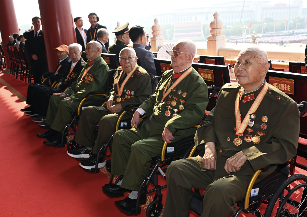 紀(jì)念中國人民抗日戰(zhàn)爭暨世界反法西斯戰(zhàn)爭勝利80周年大會開始前,習(xí)近平總書記登上城樓,走到抗戰(zhàn)老戰(zhàn)士老同志面前俯下身來,雙手緊緊握住他們的手,目光深情而溫暖。