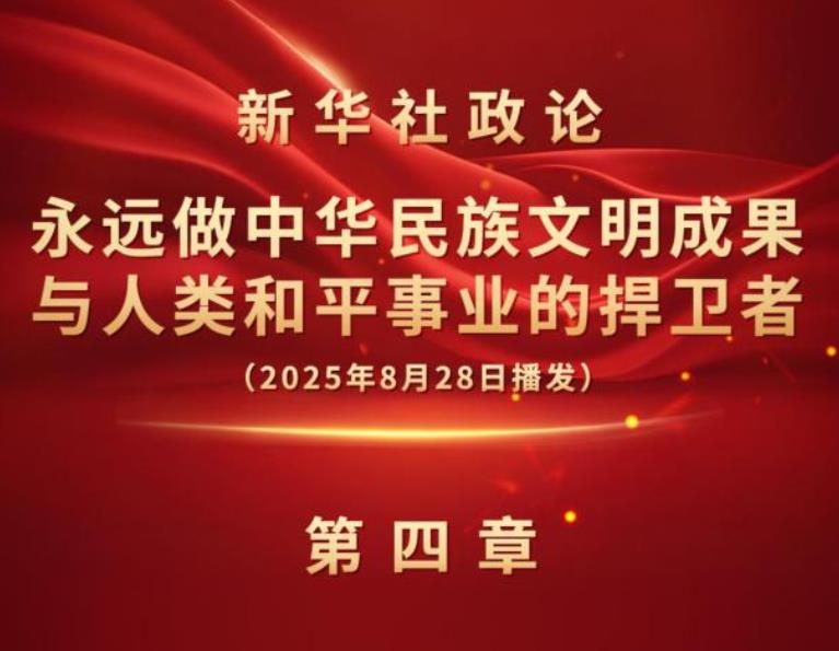 新華社8月28日播發(fā)《新華社政論|永遠做中華民族文明成果與人類和平事業(yè)的捍衛(wèi)者——寫在中國人民抗日戰(zhàn)爭暨世界反法西斯戰(zhàn)爭勝利80周年之際》。我們邀請誦讀嘉賓張晚意演播“第四章”。