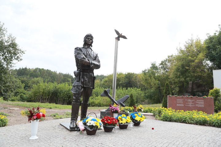 烏克蘭第聶伯河沿岸,秋日的陽光灑在庫里申科學校對面的廣場上。身著飛行服的蘇聯(lián)空軍志愿隊重型轟炸機大隊少校大隊長庫里申科的雕塑目視遠方,在他身邊,一只銅制“蘇聯(lián)雄鷹”展翅翱翔。