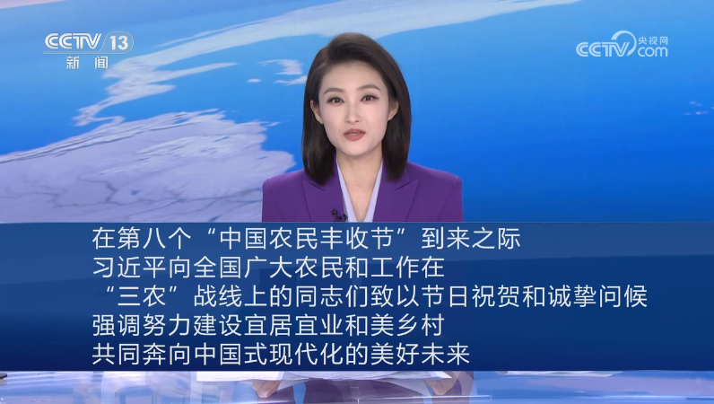 “希望廣大農(nóng)民群眾充分發(fā)揮主動性創(chuàng)造性,社會各界積極支持參與,努力建設(shè)宜居宜業(yè)和美鄉(xiāng)村,共同奔向中國式現(xiàn)代化的美好未來?!痹诘诎藗€“中國農(nóng)民豐收節(jié)”到來之際,習(xí)近平總書記向全國廣大農(nóng)民和工作在“三農(nóng)”戰(zhàn)線上的同志們致以節(jié)日祝賀和誠摯問候。