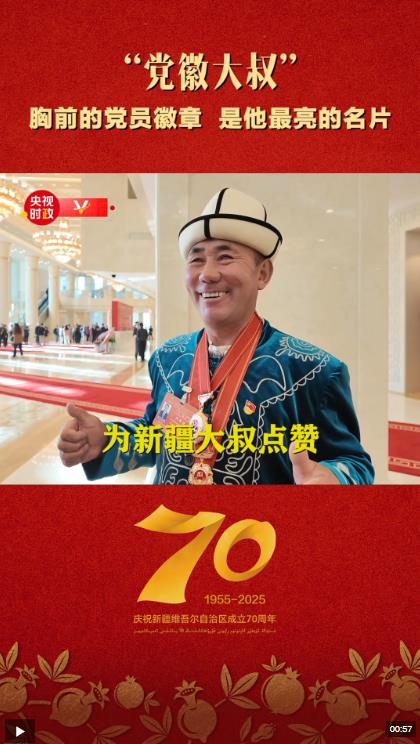 總臺記者在現(xiàn)場見到了來參會的新疆克州阿克陶縣木吉鄉(xiāng)的先進模范阿布都加帕爾·猛德。幾年前,阿布都加帕爾·猛德因一段視頻而備受關注。視頻中他幫助陷入泥潭的游客車輛脫困,游客提出給錢作為報酬,他謝絕了,并亮出胸前的黨員徽章。他也因此被網友稱為“黨徽大叔”。