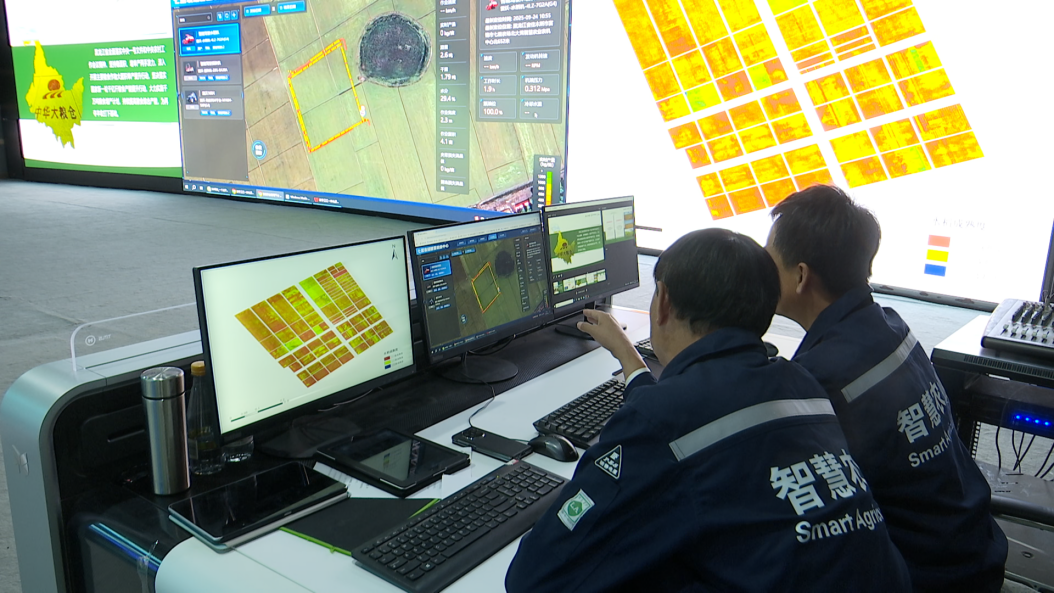 七星農(nóng)場“科技賦能農(nóng)業(yè)生產(chǎn)”的場景不僅在田間地頭,還在農(nóng)場智慧農(nóng)業(yè)指揮中心的大屏幕上上演。今年,該中心首次投入應(yīng)用多光譜成像水稻長勢圖,為秋收提供了精準(zhǔn)高效的數(shù)據(jù)支撐?!拔覀兺ㄟ^大數(shù)據(jù)、人工智能等技術(shù),分析水稻成熟度、未來氣象等,制定收獲排期,讓秋收更為有序。”該指揮中心高級主管王勇說。
