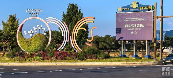深秋時(shí)節(jié),千年古城慶州明凈如畫,街道兩側(cè)懸掛著APEC會議旗幟。亞太經(jīng)合組織(APEC)第三十二次領(lǐng)導(dǎo)人非正式會議即將在這里舉行。