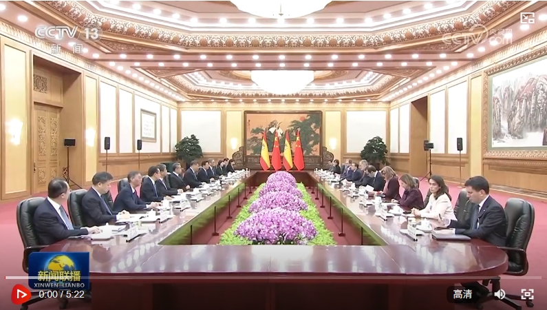 習(xí)近平歡迎費(fèi)利佩六世國王訪華,指出中國和西班牙都有深厚的歷史文化底蘊(yùn)。建交50多年來,兩國堅(jiān)持從戰(zhàn)略高度和長遠(yuǎn)角度看待和發(fā)展雙邊關(guān)系,相互尊重、相互支持、相互成就,樹立了不同歷史文化、不同社會(huì)制度國家友好相處、共謀發(fā)展的典范,也為推動(dòng)全球開放合作、維護(hù)國際公平正義發(fā)揮了重要作用。西班牙王室為中西關(guān)系發(fā)展作出了突出貢獻(xiàn)。在兩國迎來建立全面戰(zhàn)略伙伴關(guān)系20周年之際,費(fèi)利佩六世國王對(duì)中國進(jìn)行國事訪問,對(duì)推動(dòng)兩國友好合作不斷向前發(fā)展具有重要意義。