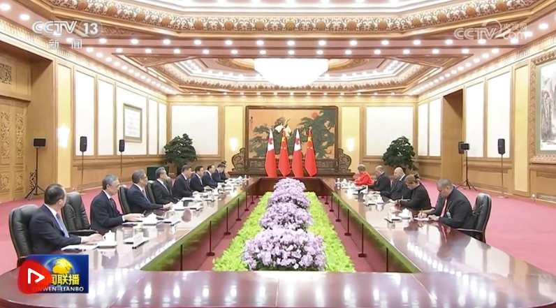 11月25日上午,國家主席習近平在北京人民大會堂會見來華進行國事訪問的湯加國王圖普六世。