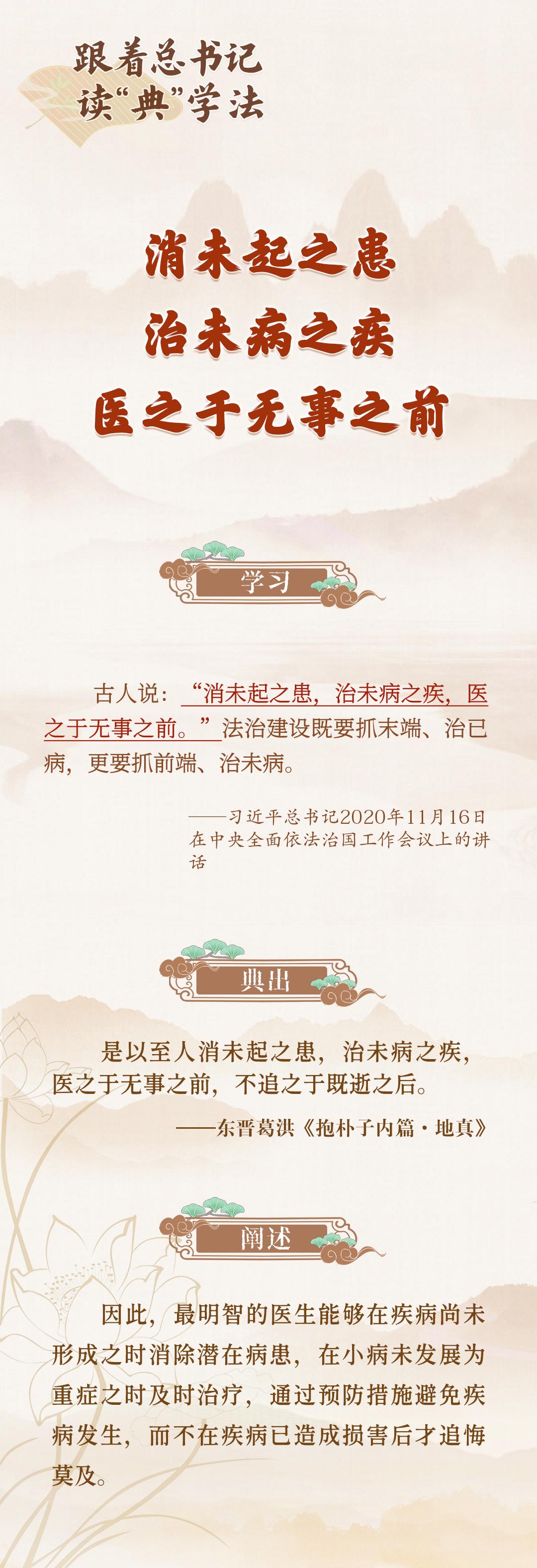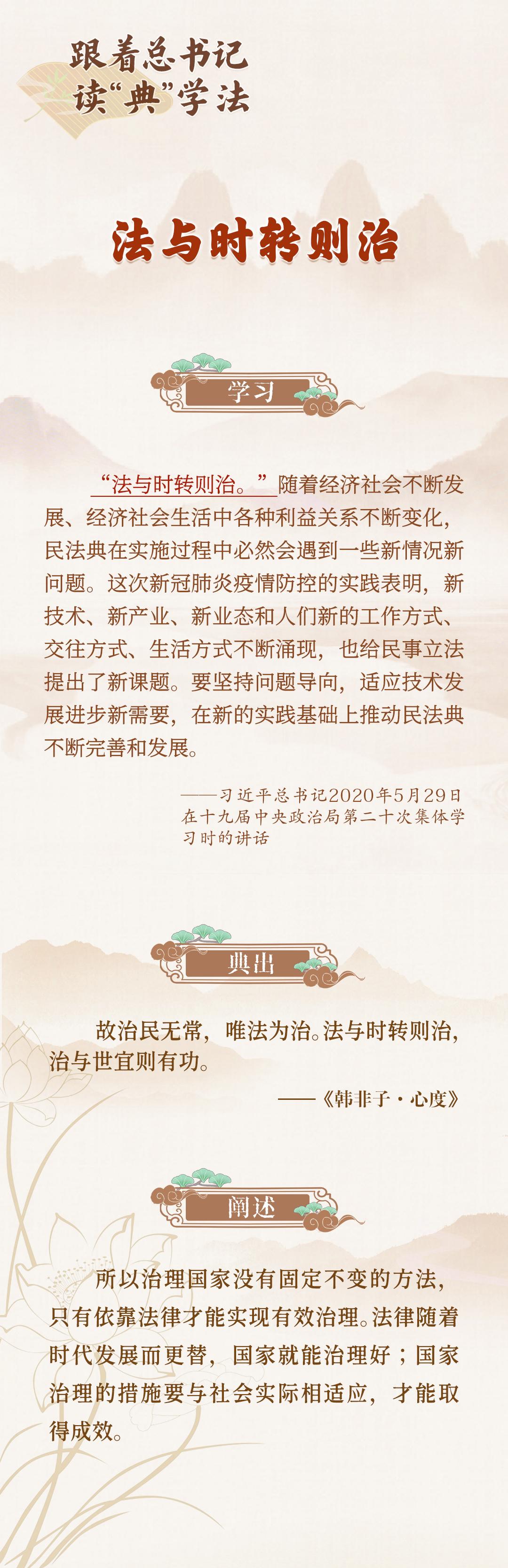 “源浚者流長(zhǎng),根深者葉茂。”中華優(yōu)秀傳統(tǒng)法律文化,承載著千年治國(guó)理政的智慧結(jié)晶,為當(dāng)代中國(guó)法治建設(shè)注入深厚的文化底蘊(yùn)。習(xí)近平總書(shū)記在多次講話中運(yùn)用法治典故析法明理,推動(dòng)中華優(yōu)秀傳統(tǒng)法律文化實(shí)現(xiàn)創(chuàng)造性轉(zhuǎn)化、創(chuàng)新性發(fā)展,使其由歷史典籍中的法理智慧,發(fā)展成順應(yīng)時(shí)代所需的治國(guó)理念。