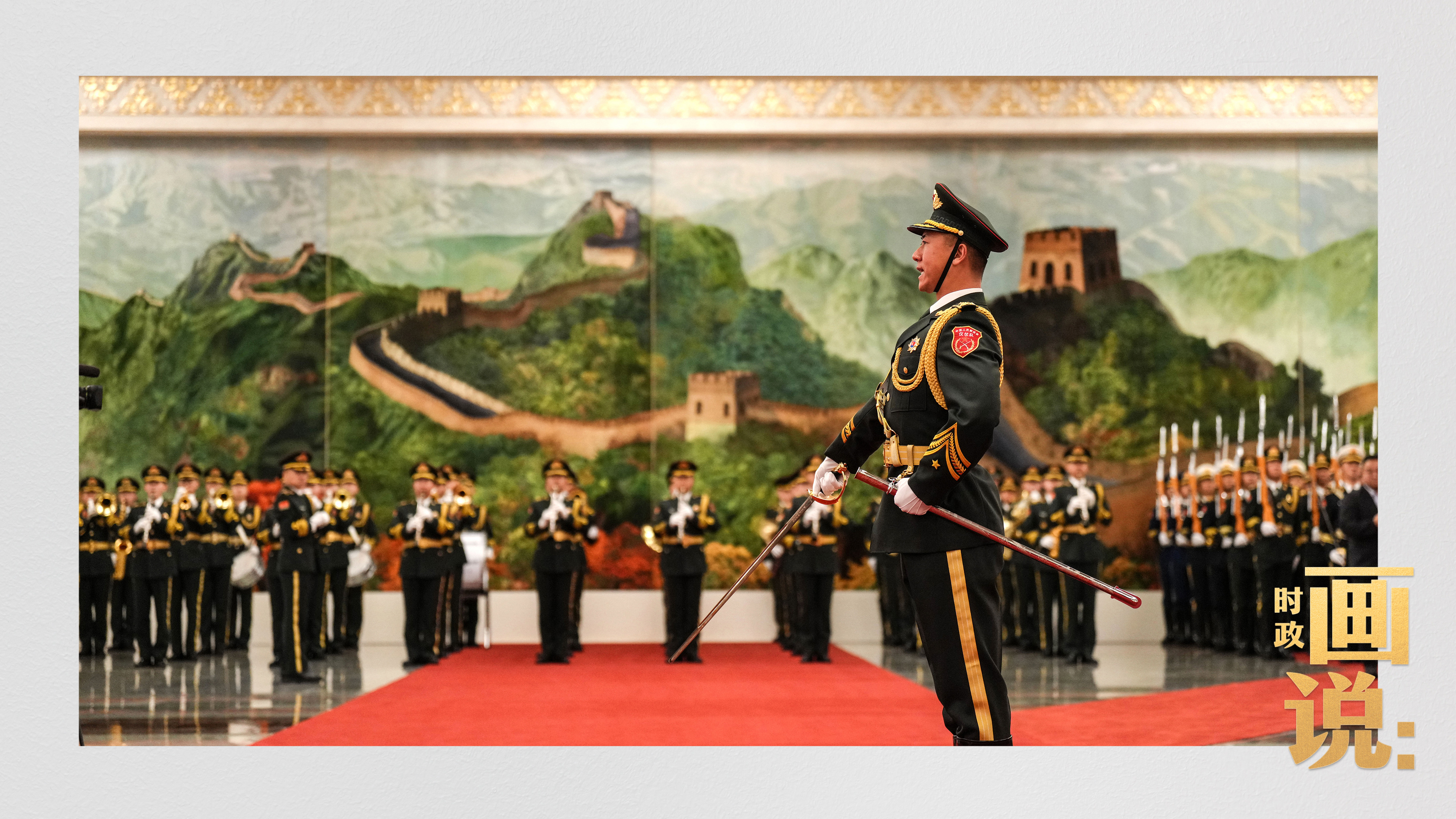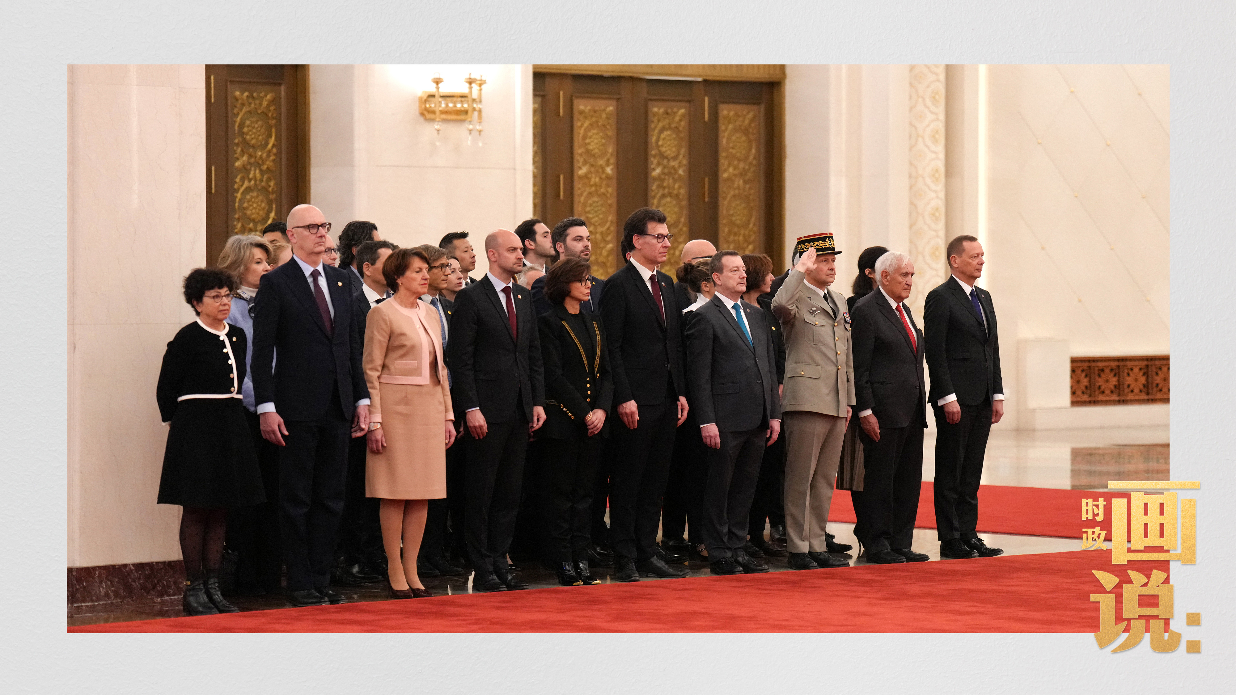 △習近平和夫人彭麗媛在人民大會堂北大廳為馬克龍和夫人布麗吉特舉行歡迎儀式