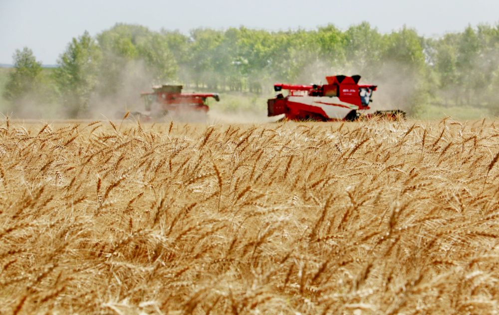 2025年8月5日,位于黑龍江省五大連池市的大慶油田農(nóng)場調(diào)動多臺聯(lián)合收割機搶收小麥。新華社發(fā)(陸文祥 攝)