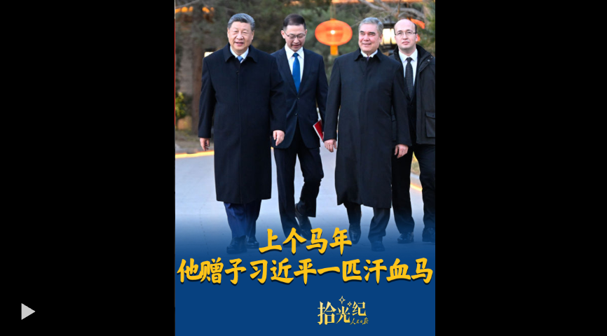 3月18日,國家主席習近平會見土庫曼斯坦民族領袖、人民委員會主席別爾德穆哈梅多夫。2014年,別爾德穆哈梅多夫曾贈予中方一匹汗血馬?!巴苿又型陵P(guān)系像汗血寶馬一樣馬不停蹄、一馬當先”,一起回顧中土的“駿馬外交”。