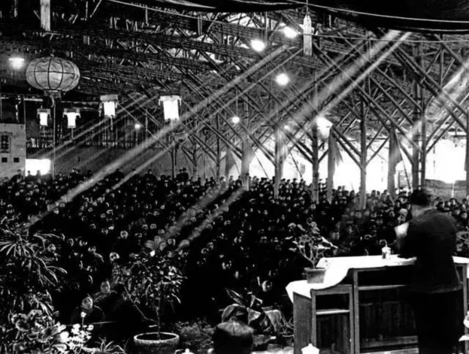 用竹篾草棚搭建的臨時(shí)大禮堂(圖片來源:西安交通大學(xué)新聞網(wǎng))