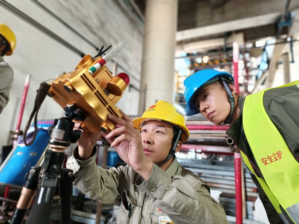 2024年4月23日,中國核電工程有限公司的企業(yè)導(dǎo)師和項(xiàng)目負(fù)責(zé)人現(xiàn)場指導(dǎo)朱澳(左一)。(李海萁 攝)