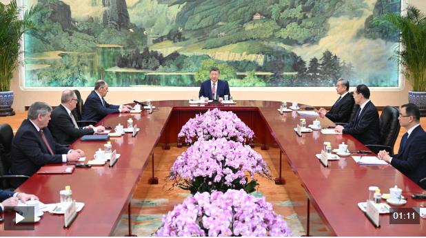 4月15日上午,國家主席習近平在北京人民大會堂會見俄羅斯外長拉夫羅夫。