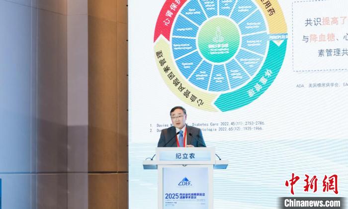 紀(jì)立農(nóng)教授在2025內(nèi)分泌代謝疾病前沿進(jìn)展學(xué)術(shù)會(huì)議上發(fā)言。(會(huì)議組委會(huì)供圖)