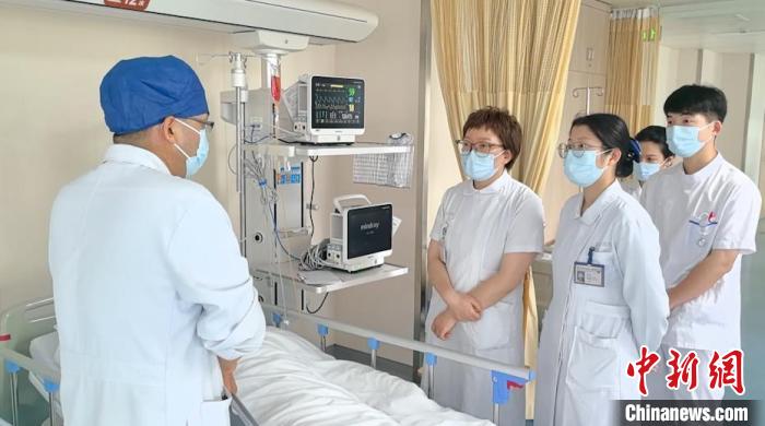 復(fù)旦大學(xué)附屬金山醫(yī)院心血管內(nèi)科醫(yī)護團隊在為患者診斷病情。楊惠聰 攝