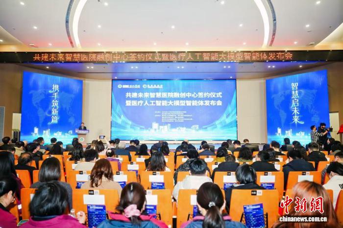 圖為武漢協(xié)和“未來智慧醫(yī)院融創(chuàng)中心”掛牌活動(dòng)現(xiàn)場(chǎng)?!≈鬓k方供圖