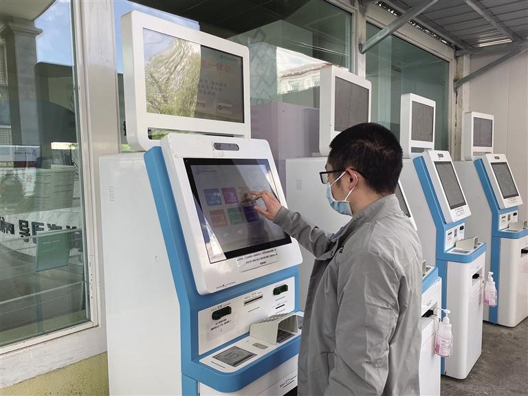 拉薩市民正在使用醫(yī)院內(nèi)的一體機(jī)掛號(hào)。記者 趙越 攝