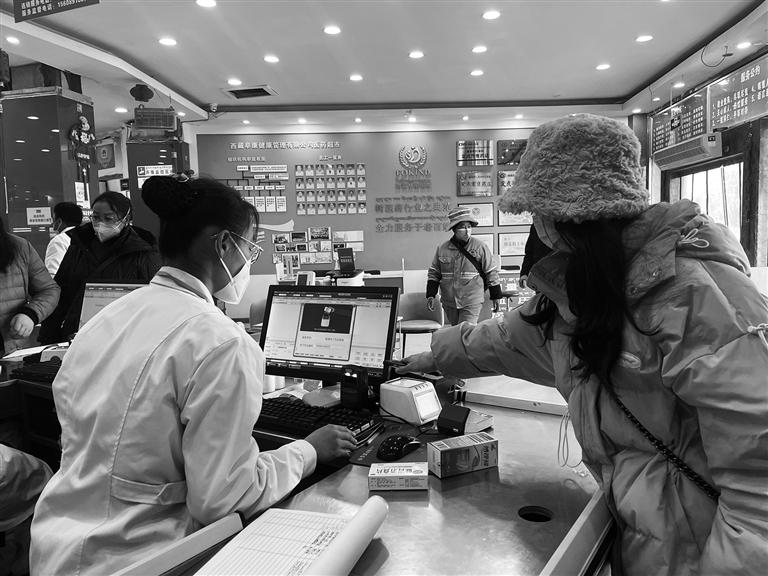拉薩市民正在藥店使用醫(yī)保卡購藥。