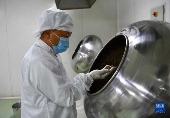 普窮次仁在檢查藏藥制丸工序(4月20日攝)。新華社記者 晉美多吉 攝