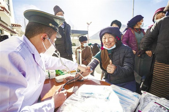武警西藏總隊(duì)拉薩支隊(duì)深入拉薩市墨竹工卡縣巴洛村開展惠民問診活動(dòng)。記者 格桑倫珠 唐斌 攝