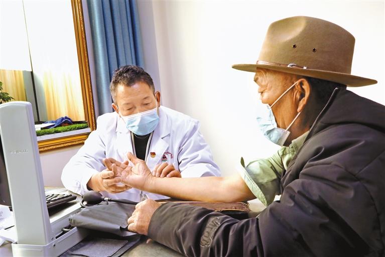 近日,記者走進該院心腦血管科時,主任醫(yī)師扎西旺堆正在給患者看病。