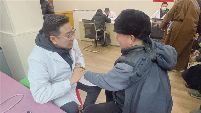 阿堯·四郎次仁給社區(qū)居民看病。