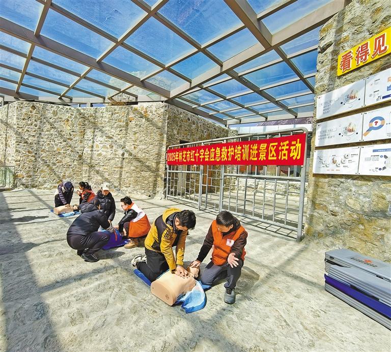 圖為巴松錯(cuò)景區(qū)應(yīng)急救護(hù)培訓(xùn)現(xiàn)場(chǎng)。記者 劉楓 攝