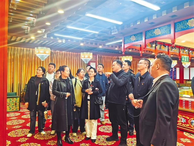 圖為學(xué)員們?cè)谖鞑馗事恫厮幑煞萦邢薰菊褂[館認(rèn)真了解藏醫(yī)藥文化的傳承、藏醫(yī)藥資源保護(hù)利用等內(nèi)容。記者 王珊 攝