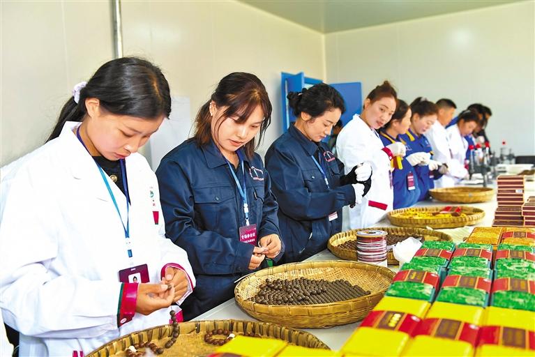 圖為西藏仙露藏藥有限公司的員工在分揀包裝藏藥藥品。 記者 丹增群培 攝