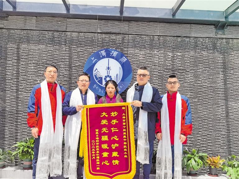康復(fù)后的患者家屬給上海市援藏醫(yī)生送來錦旗表達(dá)感謝。