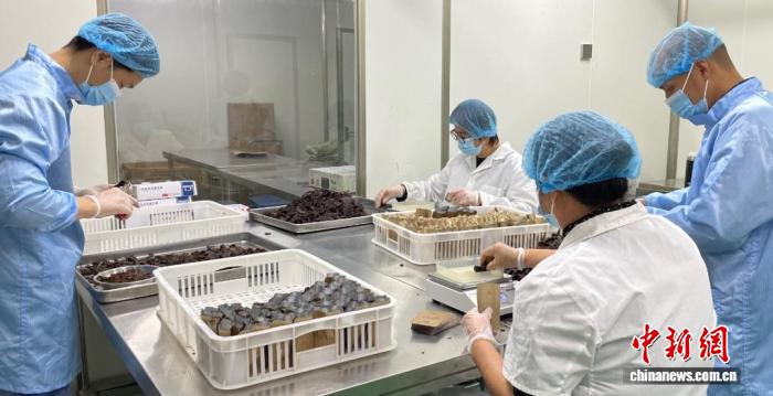 2025年,浙江溫州蒼南,企業(yè)員工包裝中藥材。 謝中允 供圖