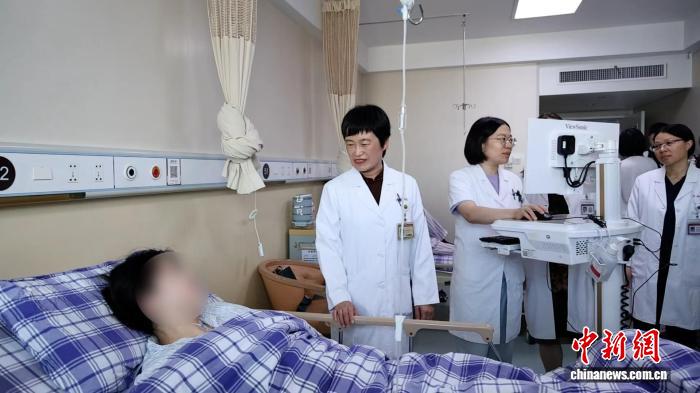 周堅(jiān)紅(左二)在查房中。肖健 攝