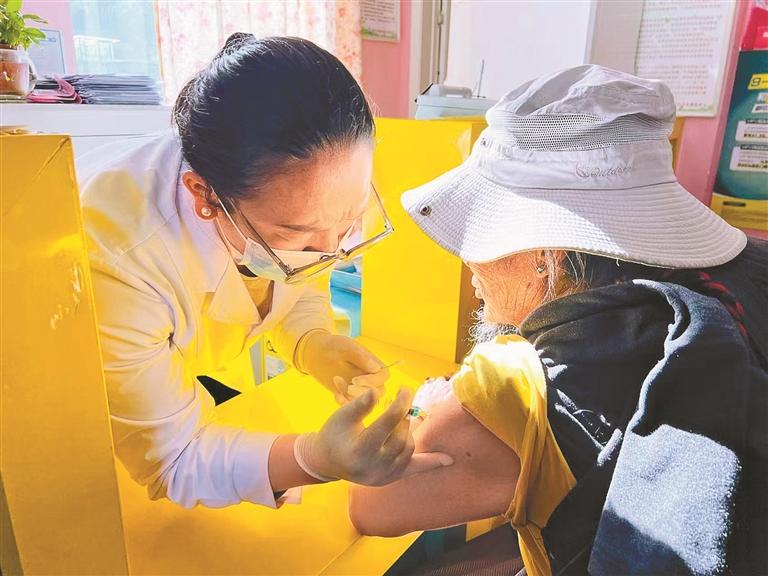 圖為一位老人在八廓街道社區(qū)衛(wèi)生服務(wù)中心接種疫苗。記者 央金 攝