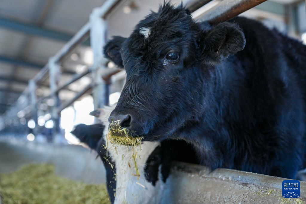12月3日,克隆樟木牛母犢在西藏動物疫控中心(區(qū)畜牧總站)曲水實驗站牛場吃草料。新華社記者 丁增尼達 攝