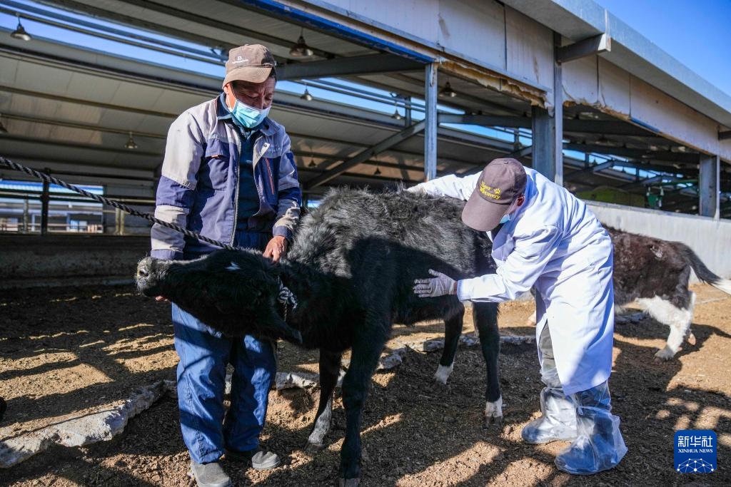 12月3日,西藏自治區(qū)動物疫病預(yù)防控制中心(區(qū)畜牧總站)曲水實驗站的工作人員在檢查克隆樟木牛母犢的眼瞼狀況。新華社記者 丁增尼達 攝