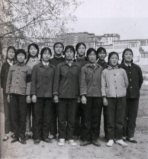 1976年10月來到拉薩,和山東女同學(xué) 在布達(dá)拉宮前合影。左后一為作者。攝影/陳宗烈 沈晶