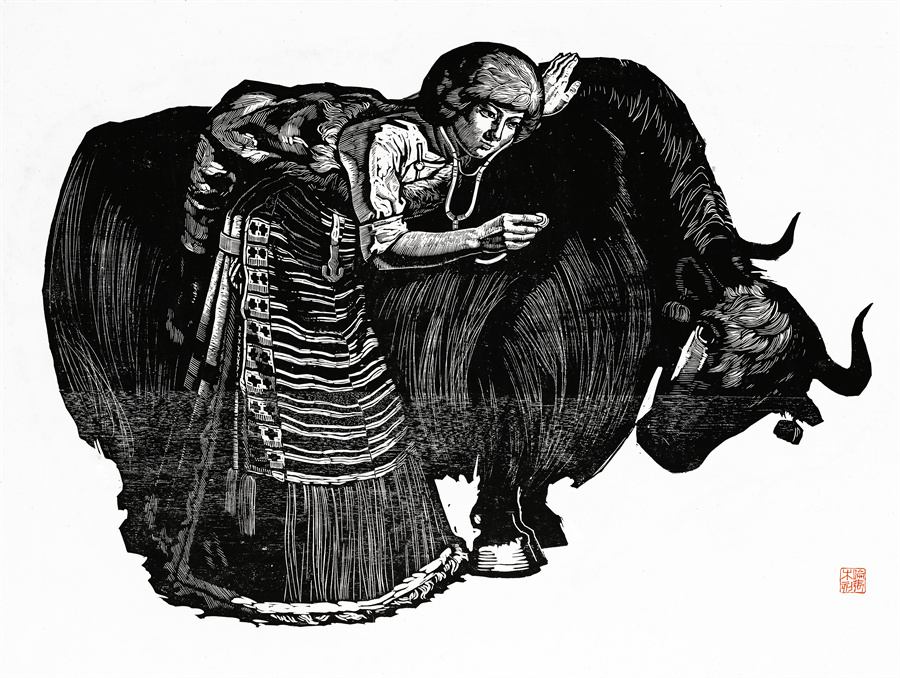 這些年來可以肯定的是我的創(chuàng)作道路和方向是基本對頭的。前幾年有人寫文章評論說,在外來思想影響已很豐富、多元化格局已經(jīng)形成的情況下,差不多只有版畫還恪守著現(xiàn)實主義的創(chuàng)作道路,而且在美術(shù)領(lǐng)域起到了導(dǎo)向作用。順便為版畫說句話:搞版畫的人一直尊重生活,認(rèn)定生活是第一性的,版畫一開始就是在革命的環(huán)境中發(fā)生、發(fā)展起來的。版畫隨著四大發(fā)明發(fā)源于中國的土壤,后來被歐洲發(fā)展了,反過來又影響到中國。老大的中國有發(fā)明權(quán),但并沒有把它發(fā)展起來。魯迅先生為了推動版畫的發(fā)展,特別介紹了德國版畫和俄羅斯版畫為代表的版畫代表作和代表人物,還有美國的肯特,比利時的麥綏萊爾。介紹文字很精彩,無論對生平、對作品的介紹都很精彩。他推出的那些版畫大師,至今仍巍然屹立在美術(shù)史上。他對版畫的深刻而獨到的理解很可貴。國外有些不很知名但有好作品的,他也介紹到。而且給我們指出哪些是范本,我們一看果然耳目一新。魯迅先生的提倡影響了中國版畫的發(fā)展,進入了一個嶄新的階段,形成所謂新興版畫。這段時間并不長,也就六七十年吧。版畫統(tǒng)領(lǐng)潮流,面向生活的潮流。所以它的路子就很正,這個正就是正統(tǒng),一直發(fā)展得很健康。我從小就受影響,我當(dāng)時所看到的版畫都是反映民間生活的東西:戰(zhàn)爭年代反映民間的疾苦與災(zāi)難,和平年代反映民眾的感情和生活,所表現(xiàn)的風(fēng)景也由平常人眼中投射。一句話就是為人民服務(wù)指導(dǎo)下的藝術(shù)創(chuàng)作。如果問我的作品和生活的距離有多大,可說距離是小的,并未受到更多潮流的干擾,并未背離為人民服務(wù)的方向。正因如此,我要把西藏題材表現(xiàn)好,表現(xiàn)在一個理想的藝術(shù)高度上,而且這一高度還能讓一般欣賞者達到。我的理想就是這樣,要達到這一目標(biāo)看來還很費勁。