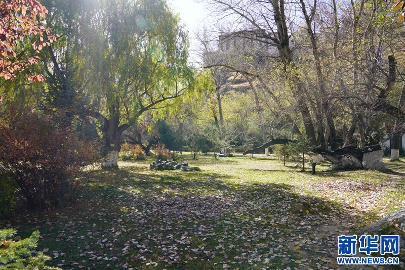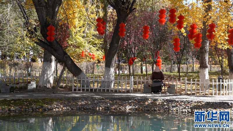金秋的宗角祿康公園景致別有一番滋味:藍天、碧水與遠處的雪山交相輝映,一切仿佛是畫家手中的調(diào)色盤,美的恰到好處。