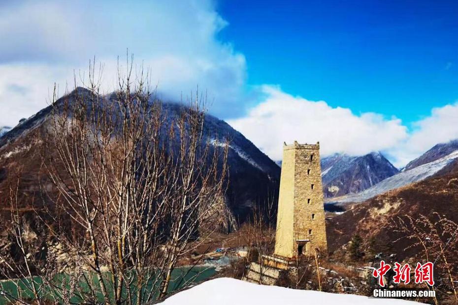 12月3日,一場雪,紛紛揚揚,撒落在四川茂縣疊溪鎮(zhèn),降雪過后,天空放晴,陽光照耀下,整個古鎮(zhèn)與瑞雪、云海、藍天相互映襯交融,構(gòu)成了一幅絕美的冰雪畫卷。疊溪鎮(zhèn)的烽火臺、水景觀、古鎮(zhèn)老街、下海子碉樓被雪花覆蓋,美得像一幅山水畫。陳貴瓊 攝