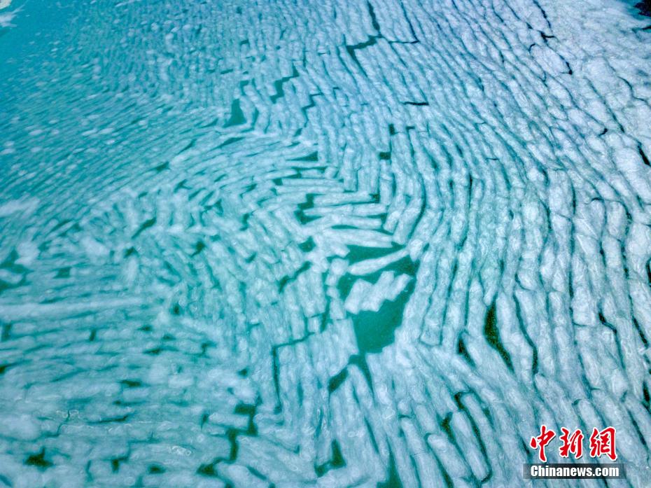 1月31日,攝影師在使用無人機航拍麻米湖時發(fā)現(xiàn),部分湖冰凍裂成“指紋狀”,十分神奇、壯觀。圖為麻米湖凍成了“指紋狀”。 曹枝清 攝