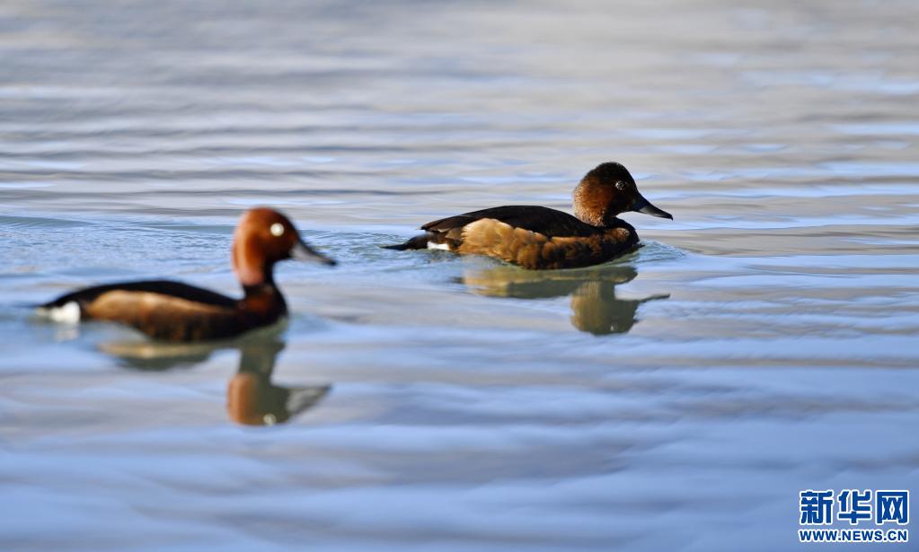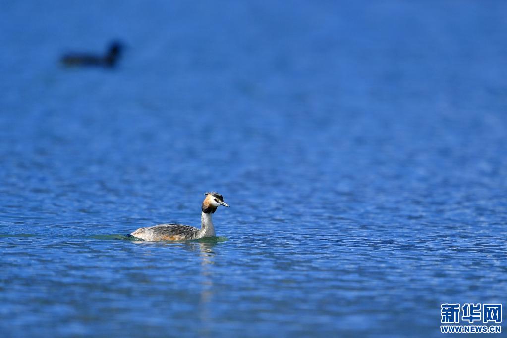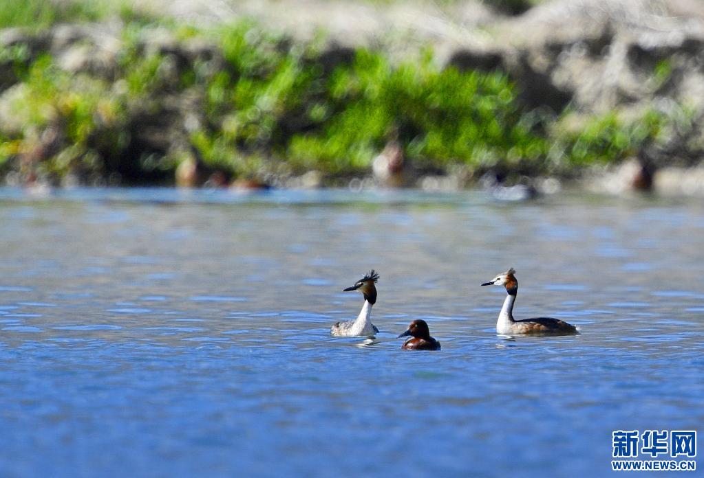 夏日里,鳳頭 和小 在西藏拉薩拉魯濕地國家級自然保護區(qū)水面上嬉戲。