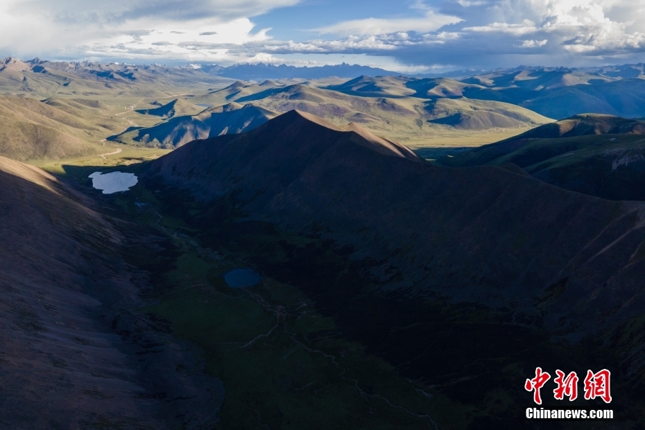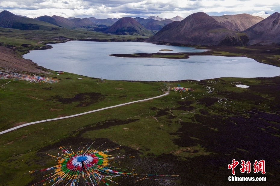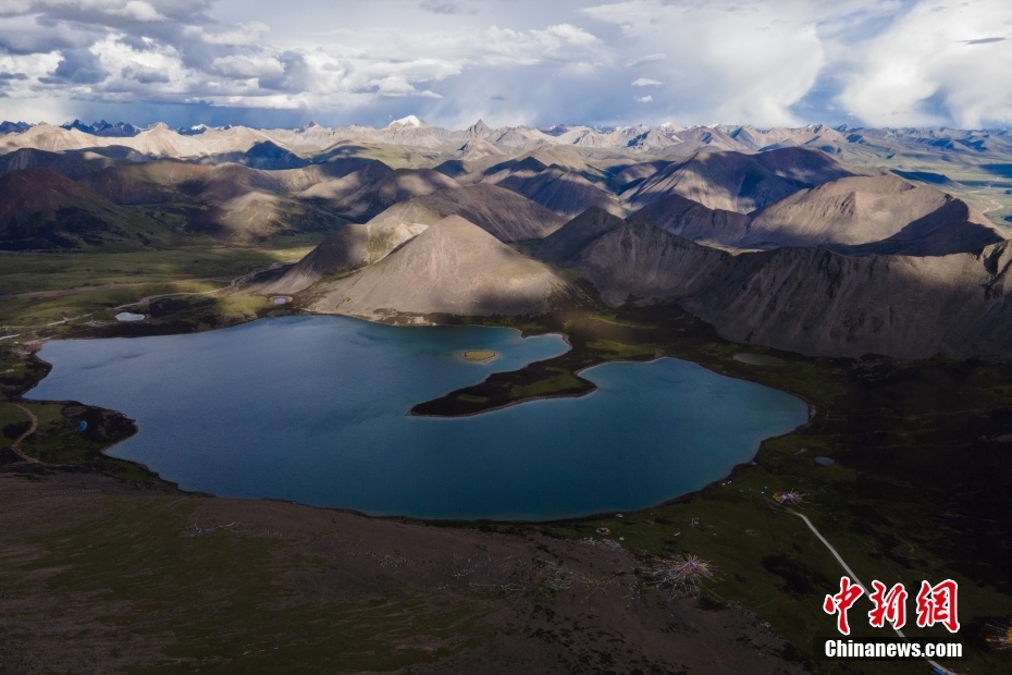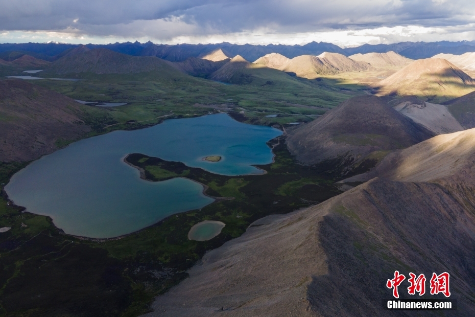 6月23日,思金拉措湖邊高原山脈風(fēng)光。思金拉措位于西藏墨竹工卡縣日多鄉(xiāng),海拔4500多米,周邊群峰簇?fù)?,地形猶如聚寶盤,不少民眾將其稱為西藏的“財(cái)神湖”。(無人機(jī)照片) 中新社記者 江飛波 攝