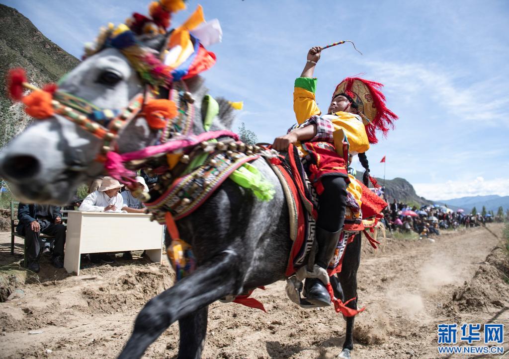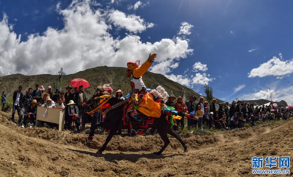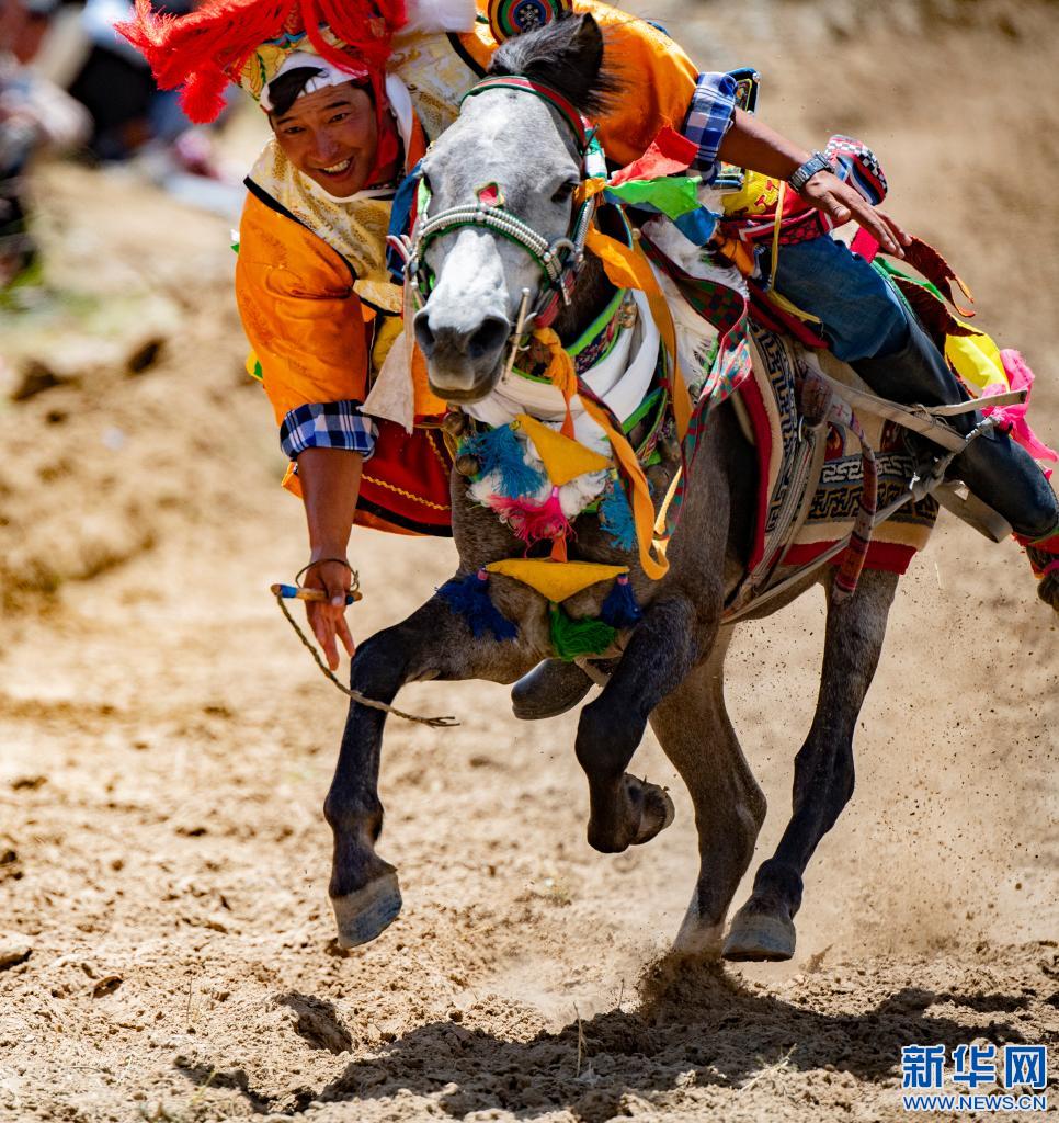 當日,位于雅魯藏布江畔山谷里的西藏山南市貢嘎縣昌果鄉(xiāng)崗旦村舉行一年一度的賽馬,迎接即將到來的收獲季節(jié)。